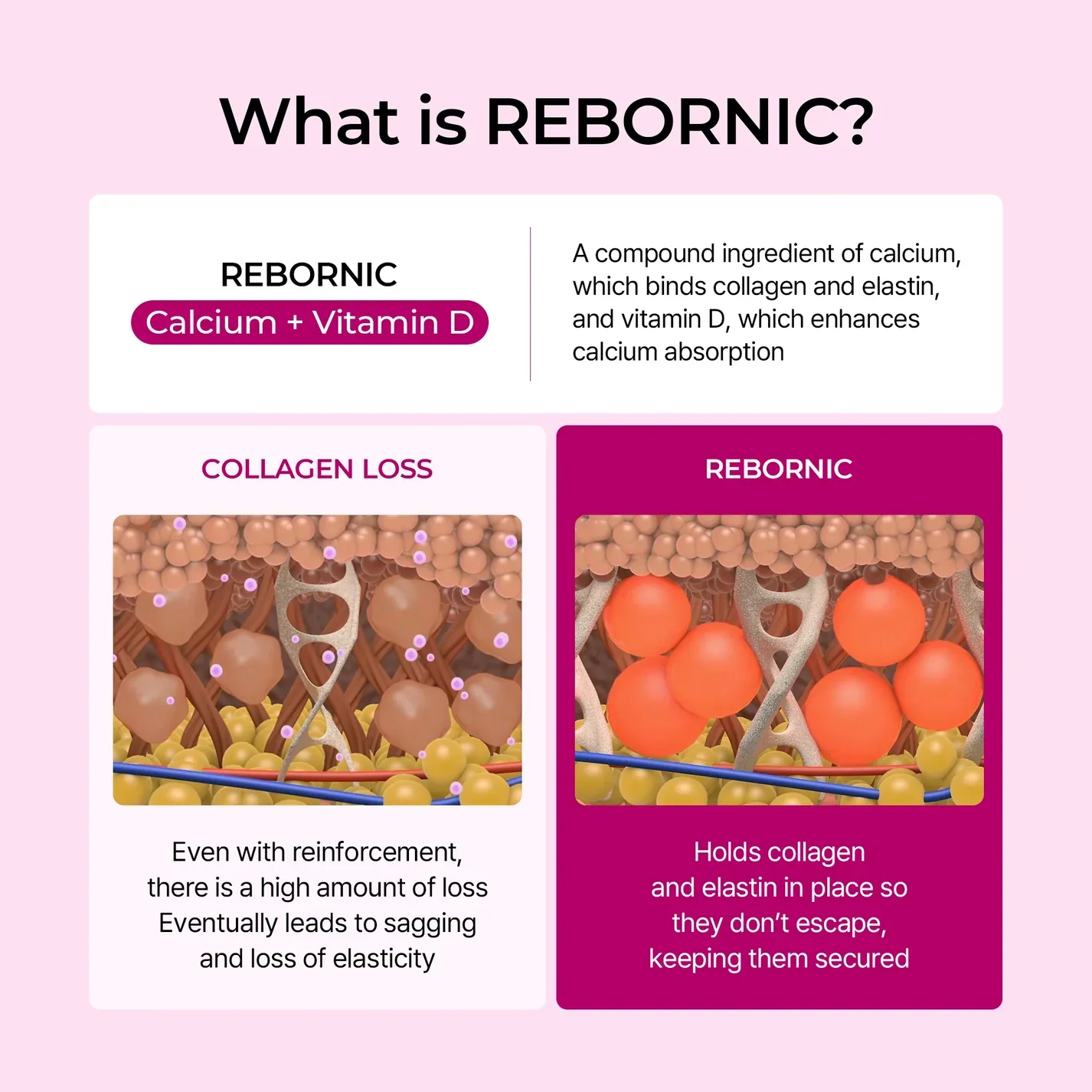 Calcium microspheres trigger new collagen -your body starts making its own collagen again, creating 24%thicker skin that lasts up to 18 months.